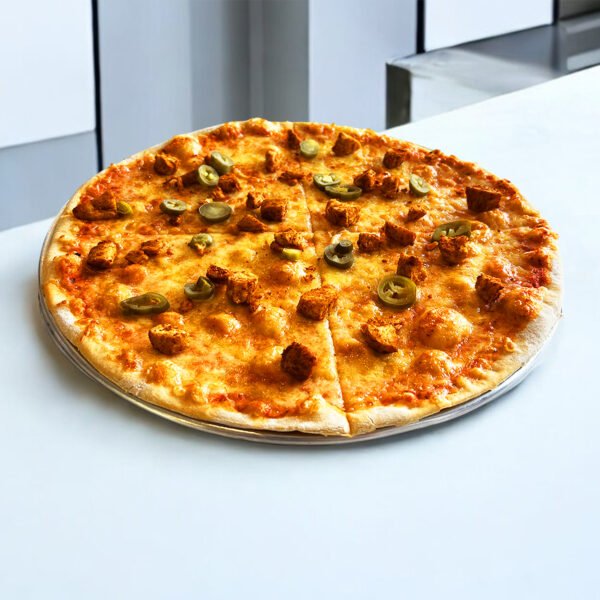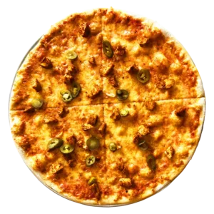 Baked on our handcrafted crust—crispy on the outside, soft and fluffy on the inside—the Fire Bird Pizza guarantees a satisfying crunch followed by a melt-in-your-mouth center. The combination of smoky chicken, gooey cheese, and zesty jalapeños makes every slice an unforgettable experience.