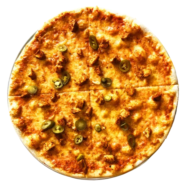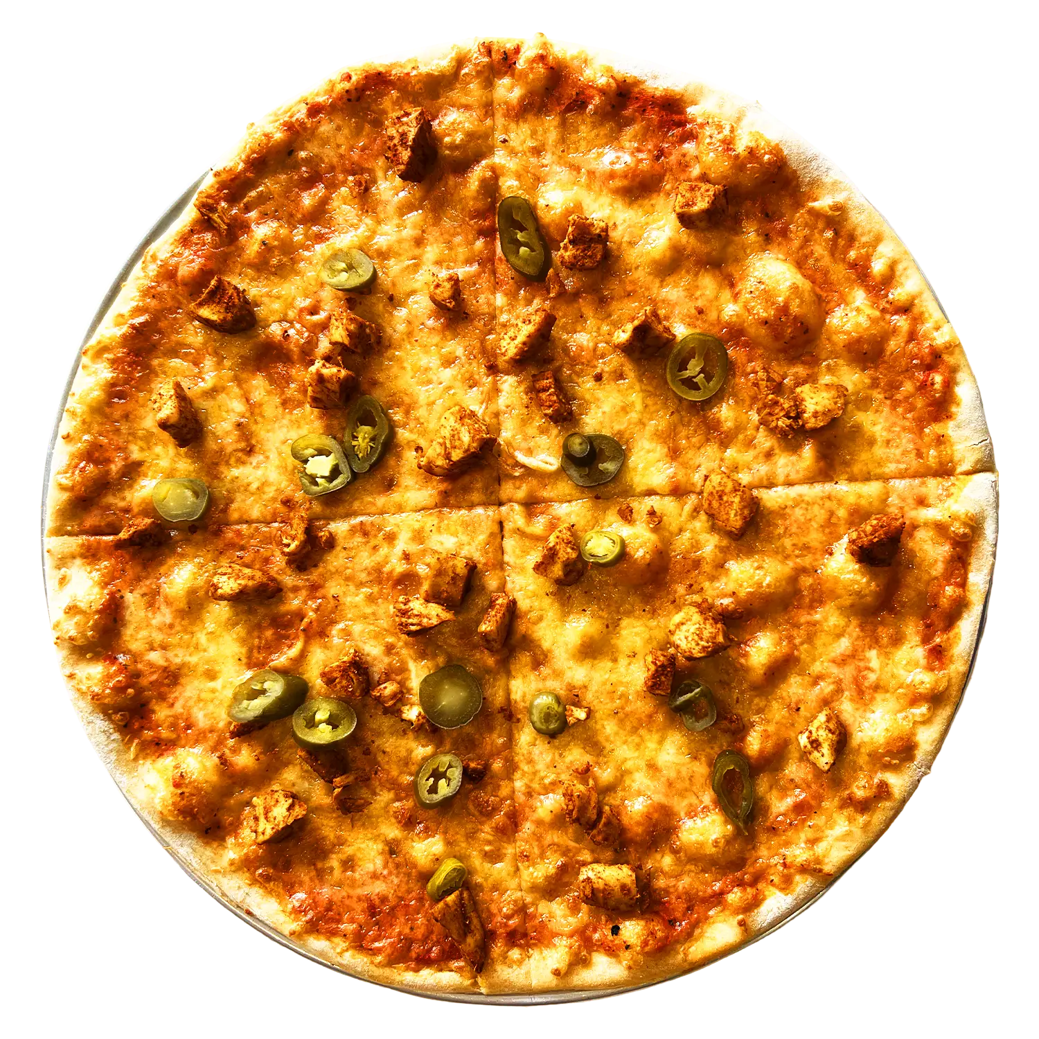 Turn up the heat with our bold and flavorful 15-inch Fire Bird Pizza—a perfect choice for spice lovers who crave a kick with every bite. This fiery creation is crafted with juicy, tender spicy chicken, layered with a rich blend of creamy mozzarella and sharp cheddar cheeses, then topped with fresh jalapeños for that irresistible heat. Finished with our signature tomato sauce, it delivers the perfect balance of savory, cheesy, and spicy flavors.