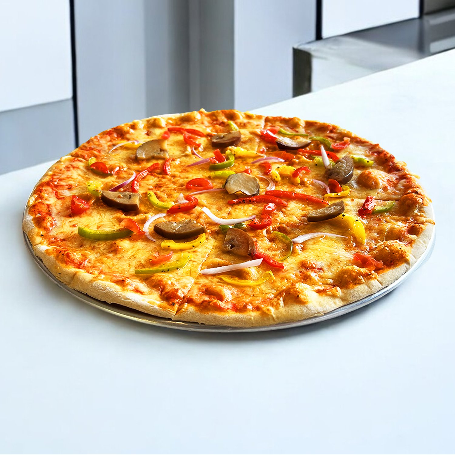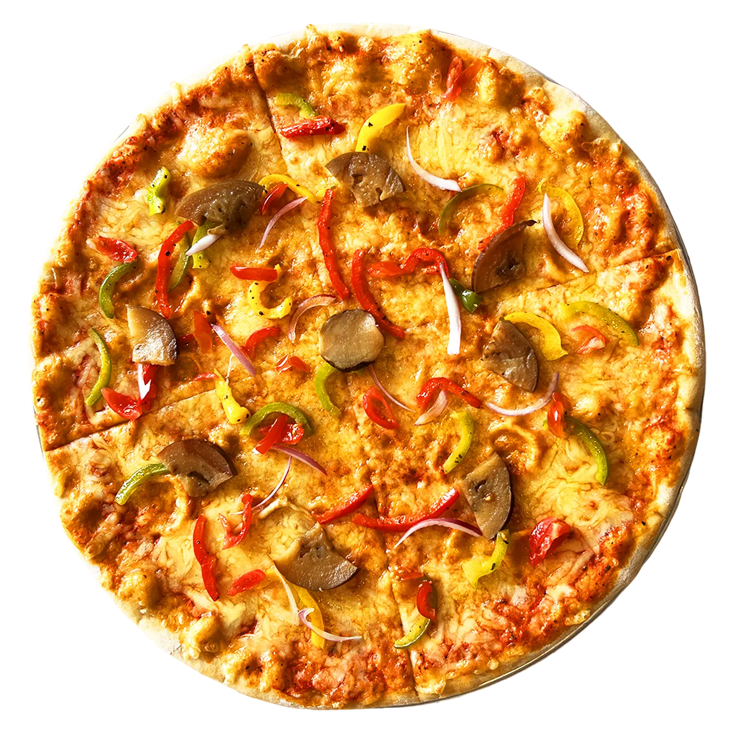 Our signature crust—crispy on the outside, soft and airy on the inside—makes the perfect foundation, baked to perfection for that irresistible bite. Light yet indulgent, this pizza is proof that vegetarian options can be just as bold and satisfying as their meaty counterparts.